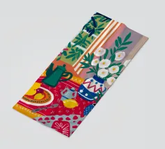 Un collage vibrante e caotico di motivi contrastanti, tra cui righe, pois e forme organiche. La gioiosa esplosione di colori e texture crea un'opera d'arte energica e piena di vita.