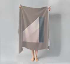 Una composizione geometrica caratterizzata da rettangoli sovrapposti nei toni del beige e del marrone, che crea un moderno effetto minimalista. La disposizione diagonale aggiunge un senso di movimento e profondità.