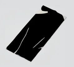 Forme astratte nere e audaci si sovrappongono su uno sfondo chiaro, creando una composizione dinamica e intrigante. Il contrasto tra le forme scure e lo sfondo tenue attira l'attenzione sul gioco delle forme e dello spazio negativo.