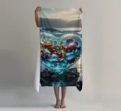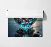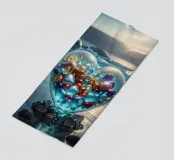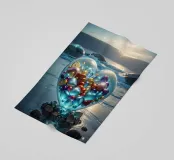 Un cuore di cristallo multicolore rivolto verso l'oceano, tra trasparenza e luce. Un cuore di cristallo trasparente, pieno di riflessi colorati, è rivolto verso l'oceano. Sotto la luce del mare, i cuoricini al suo interno catturano e diffrangono la limpidezza del cielo, creando un gioco di scintille vivaci e rilassanti. Tra purezza, movimento e armonia, quest'opera evoca la trasparenza delle emozioni e la fragile bellezza della luce sull'acqua. Una creazione luminosa, all'incrocio tra design e poesia visiva.