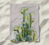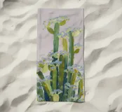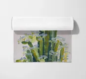 Questa delicata opera d'arte raffigura cactus verdi con fiori azzurri, dipinti in tenui colori pastello. La combinazione di toni morbidi di beige e verde conferisce al motivo un'atmosfera calda e naturale. Ispirato alla botanica del deserto, il risultato è un quadro vegetale minimalista con una leggerezza estiva.