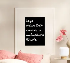 BAWA - Black and White Art è uno spazio per l'arte che si concentra sull'essenziale. Cartoni animati, tipografia, botanica, illustrazioni e poesia si riuniscono qui - ridotti alla potenza del bianco e del nero. Senza distrazioni, senza compromessi. Ogni disegno è creato con amore per i dettagli e un occhio chiaro per la forma, il contrasto e l'atmosfera. In questa estetica minimalista, ogni opera racconta la propria storia: a volte umoristica, a volte poetica, a volte tranquilla, ma sempre espressiva e piena di personalità. Il bianco e il nero creano chiarezza. Rendono visibili le emozioni, vivide le linee e precisi i pensieri. È proprio questo effetto che caratterizza BAWA: Un'arte che appare ridotta, ma che tocca nel profondo. Tutte le stampe sono prodotte in alta qualità, in modo che ogni linea, ogni contorno e ogni parola appaiano perfettamente nitidi - senza tempo, moderni e duraturi. Che siate alla ricerca di una dichiarazione per la vostra casa, di un regalo con un significato o di un'arte che combini calma e forza, BAWA porta la bellezza della semplicità sulle vostre pareti.