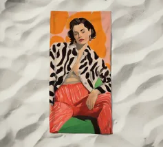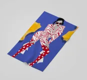 A high fashion illustration of a figure in a confident, dynamic pose, showcasing a bold clash of patterns with a geometric jacket and red polka dot pants, exuding pure energy.