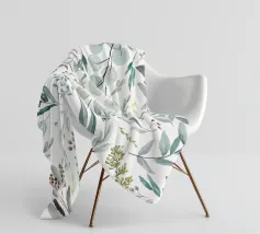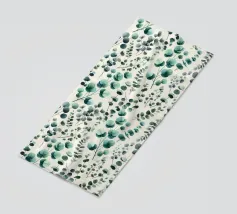 Disegno acquerellato di foglie di eucalipto in verde e bianco.
