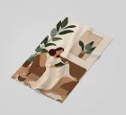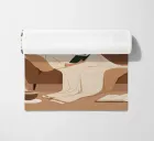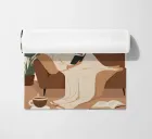 A minimalist digital painting of a woman reclining on a sofa with a book in hand. Surrounded by lush indoor plants and a steaming cup of coffee, the scene captures the essence of self-care and slow evenings at home. Perfect for modern and cozy interiors alike.