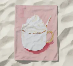 Un'illustrazione spiritosa, deliziosa e golosa di una tazza piena di cioccolata calda e panna montata. Il testo dice: "Non voglio innamorarmi, voglio innamorarmi della cioccolata".