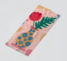 Ravvivate la vostra casa con questo moderno motivo floreale. Il vaso stilizzato in rosso e rosa, circondato da foglie blu e fiori delicati su uno sfondo azzurro, conferisce a questo disegno un aspetto grafico e contemporaneo. Ideale per decorazioni murali, cuscini, tazze, cover per cellulari e molto altro ancora. Questo motivo è perfetto per chi ama i disegni giocosi e colorati con un tocco di arte e modernità. Crea accenti vivaci e si adatta a un'ampia varietà di stili di interni.