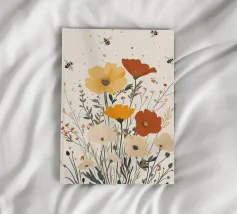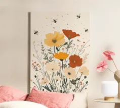 Un motivo vivace e allegro che mostra una varietà di fiori estivi in fiore dai colori caldi. Numerose api ronzanti circondano i fiori, creando un'atmosfera di leggerezza, gioia di vivere e natura in fiore. Lo stile illustrativo conferisce all'opera un carattere affascinante, quasi nostalgico. Ideale per tutti coloro che desiderano portare l'estate in casa, in salotto, nella stanza dei bambini o in ufficio. Si rivolge in particolare agli amanti della natura, agli appassionati di giardinaggio e ai fan dei motivi floreali.