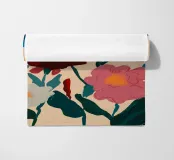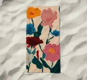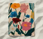 Un dipinto floreale giocoso con colori audaci e pennellate morbide, che celebra la bellezza della natura.