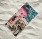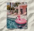 A nostalgic Palm Springs scene: a pink flamingo swim ring drifting in a turquoise pool, framed by soft pastel loungers and towering palms. This artwork brings retro summer spirit, relaxed vacation mood, and mid-century charm to any wall — ideal for living rooms, bedrooms, or stylish poolside decor.