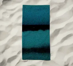 A series of layered greens and dark tones suggest a minimalist landscape. The composition evokes a sense of tranquility with horizontal bands that mimic fields and distant hills.
