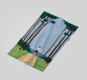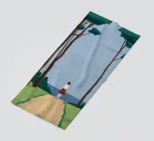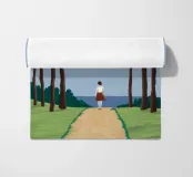 A serene illustration of a lone figure walking down a path through a tall, majestic forest of pine trees. The scene is peaceful, contemplative, and captures the feeling of solitude and connection with nature.