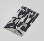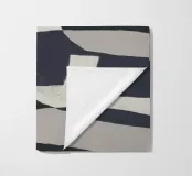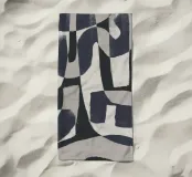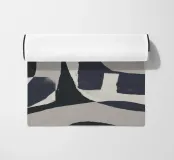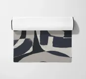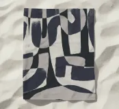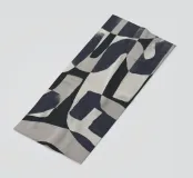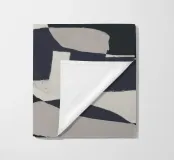 L'immagine è caratterizzata da audaci forme sovrapposte in bianco e nero, che creano un dinamico motivo astratto. I forti contrasti tra luce e buio ne esaltano l'impatto visivo.