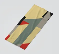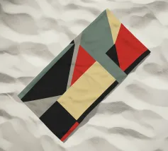 Un'audace composizione astratta con forme geometriche nei toni del rosso, del verde acqua, del grigio e del beige. Il design è semplice e moderno e mette in risalto il contrasto di colori.