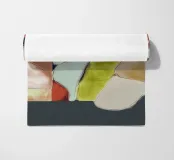 Quest'opera d'arte presenta un gioco armonioso di superfici colorate organiche nelle calde tonalità della terra, nei delicati colori pastello e nel profondo blu scuro. Le morbide transizioni e le linee chiare creano un motivo moderno e astratto che irradia calma ed eleganza. Ideale come decorazione murale contemporanea, dona stile e leggerezza a qualsiasi ambiente.