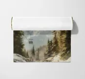Questo idilliaco motivo invernale mostra una funivia che attraversa una foresta montana innevata fino alle maestose vette. I caldi raggi del sole illuminano la scena, mentre gli abeti e le montagne innevate creano un'atmosfera alpina da sogno. Un'opera d'arte che cattura perfettamente il fascino della natura, dell'avventura e delle vacanze invernali, ideale per tutti gli amanti della montagna e degli sport invernali.
