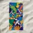 Una composizione astratta che fonde elementi floreali stilizzati con audaci forme geometriche in una vibrante tavolozza di blu, gialli, arancioni e verdi, creando una dichiarazione artistica dinamica e moderna.