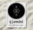 This design represents the zodiac sign of Gemini, symbolized by two twins in balance and harmony. With a circular composition, the image plays on geometric elements and stylized dots that evoke the duality and versatility of this sign. The lines and central details are balanced, suggesting the connection between the two twin personalities, while the arrangement of the dots around the circle emphasizes the idea of movement and continuous change, typical traits of Gemini. The minimalist design with black and white contrast makes it elegant and easily adaptable to different furnishing styles.