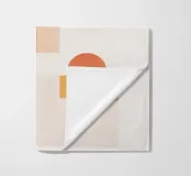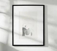 Quest'opera presenta una composizione minimalista ispirata al tramonto e al riflesso del sole nell'acqua. Le forme geometriche e le tonalità calde si fondono armoniosamente per catturare la transizione serena e pacifica dal giorno alla notte.
