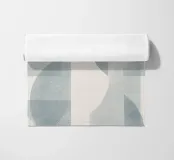Il disegno presenta un'accattivante disposizione di cerchi, rettangoli e forme astratte di foglie sovrapposte, che alludono sottilmente a forme organiche all'interno della struttura. La texture granulosa aggiunge profondità e interesse visivo.