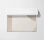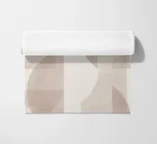Il disegno presenta un'accattivante disposizione di cerchi, rettangoli e forme astratte di foglie sovrapposte, che alludono sottilmente a forme organiche all'interno della struttura. La texture granulosa aggiunge profondità e interesse visivo.