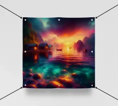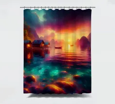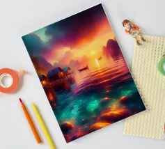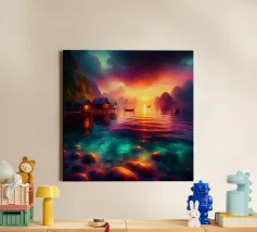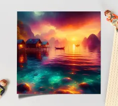 In una sera tranquilla, mentre il sole iniziava a riempire il cielo di colori caldi e invitanti, un piccolo villaggio dell'Asia si trovò sulla riva di un lago liscio come uno specchio. Le case galleggianti sembravano galleggiare sull'acqua, i loro riflessi così chiari e perfetti che era difficile dire dove finisse la realtà e iniziasse il riflesso.