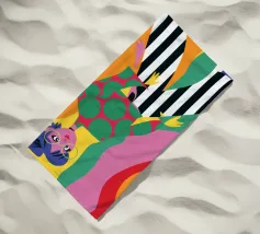 Un collage astratto vibrante ed eclettico caratterizzato da un mix di motivi audaci, tra cui righe, stampa ghepardo e pois. La composizione è un'espressione giocosa ed energica di uno stile moderno bohémien o massimalista.