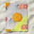 Un disegno con pompelmi e arance su uno sfondo grigio e verde.