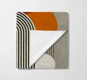 This abstract Bauhaus inspiration combines geometry and symmetry in a modern design. With white circles, semi-circles and stripes in grey, orange and pink, the illustration creates a harmonious interplay of colours. The retro striped architectural shapes give the artwork a minimalist and structured aesthetic.