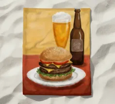 L'abbinamento perfetto per iniziare la giornata o riempire la pancia! Questo disegno presenta un delizioso hamburger e una golosa tazza di caffè, ricca di dettagli e colori accattivanti.