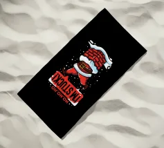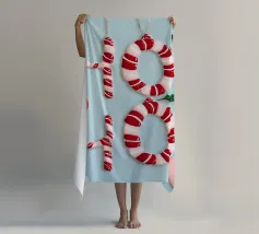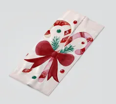 Due bastoncini di zucchero incrociati e ornati con agrifoglio e campanellino. Le parole "I'm hooked on you!" sono scritte sopra in una tipografia giocosa e festosa.