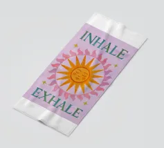 Un design minimalista che traduce la respirazione e la consapevolezza in forme e colori. Superfici delicatamente sovrapposte in verde tenue, rosa e nero formano uno sfondo calmo e organico. Le parole INHALE (orizzontale in alto a sinistra) ed EXHALE (verticale a destra) sono scritte in lettere maiuscole bianche e chiare: ridotte ma efficaci. Posizionamento perfetto Sale di meditazione e yoga Camera da letto o ufficio come rifugio di pace Sale prove, aree benessere o studi creativi