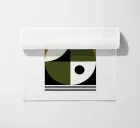 Questo pezzo, intitolato "Interplay", è uno studio sulla composizione geometrica e sull'armonia dei colori. Definita da un rettangolo verticale, l'opera presenta una disposizione complessa ma equilibrata di forme circolari e rettilinee su un fondo caldo e neutro. La composizione esplora il rapporto dinamico tra spazio positivo e negativo, utilizzando una tavolozza ristretta di nero, verde oliva, marrone caldo e crema per creare un senso di stabilità e movimento. Il preciso accatastamento e la segmentazione delle forme evidenziano un avvincente gioco di simmetria e asimmetria.