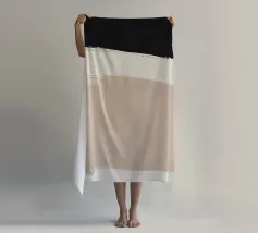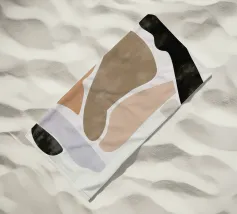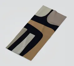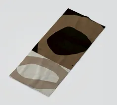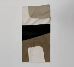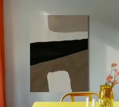 Forme astratte nei toni del marrone, del nero e del bianco si sovrappongono e contrastano tra loro per creare una composizione moderna e minimalista. Il design impiega una palette di colori sofisticati e sottolinea la forma e l'equilibrio, evocando un senso di calma e semplicità.