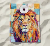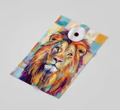 Leone colorato con rotolo di carta igienica