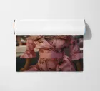 The cobblestones of Lisbon echo under Léonie's footsteps, her large dress floating around her like a sail in the warm Atlantic breeze. The Portuguese sun caresses the colourful facades of the century-old buildings, creating a kaleidoscope of pastel shades reflected on the silky fabric of her dress. She strides lightly through the steep alleyways of the Alfama, her perfume mingling with the scent of grilled sardines and freshly ground coffee. Léonie is the embodiment of Lisbon's relaxed, cool and carefree way of life.