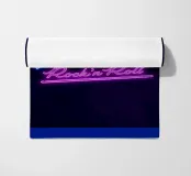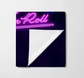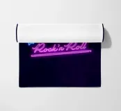 Una bella scritta a mano che sembra un'insegna al neon. Re del Rock'n Roll. Per tutti coloro che amano il rock'n roll e questo stile di vita, questa attitudine alla vita. Un grande motivo di hand lettering in colori vivaci come il blu e il rosa.