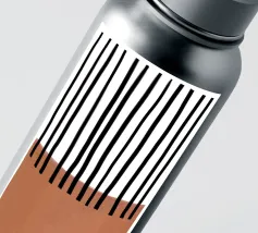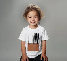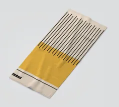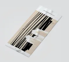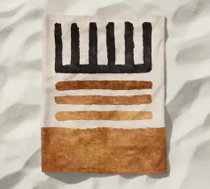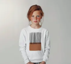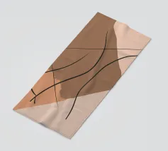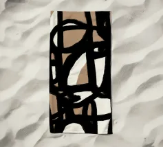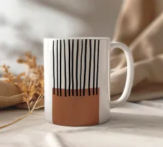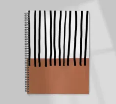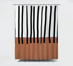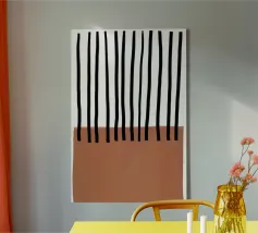 Moderno design astratto caratterizzato da linee verticali nere uniformemente distanziate che si estendono su un'area rettangolare marrone piena, creando un contrasto sorprendente e un effetto visivo dinamico.