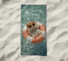 Una scena allegra: un lama che galleggia in una piscina, indossando felicemente un anello da bagno. Luminoso, divertente e inaspettato, questo disegno aggiunge umorismo e spirito estivo ai bagni, alle camere dei bambini o a qualsiasi altro spazio che abbia bisogno di un sorriso.