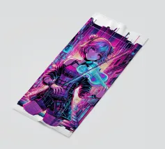 Una rappresentazione vibrante ed energica di un astronauta che sfreccia in un universo caleidoscopico. Nuvole nebulose nei toni del rosa, dell'arancio e del turchese avvolgono lo spazio, mentre pianeti colorati e stelle scintillanti riempiono lo sfondo scuro. La figura dell'astronauta, nella sua dettagliata tuta spaziale, trasmette un senso di movimento e avventura in mezzo alla vastità e alla bellezza del cosmo.