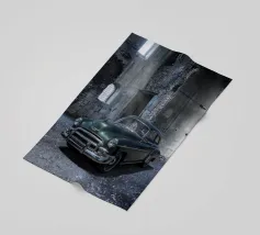 In una pittoresca strada di Londra, un'elegante auto d'epoca passa davanti a facciate di mattoni con un'atmosfera retrò e senza tempo dell'architettura britannica, mescolando storia e nostalgia urbana.