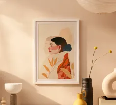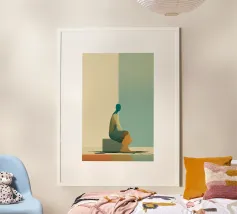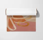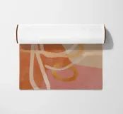 Un viaggio astratto attraverso linee fluide e forme terrose: questa composizione gioca con curve morbide, tonalità calde di terracotta, terra di Siena, fard e nudo per evocare un senso di movimento radicato. Ideale per interni moderni che cercano un tocco di pacato espressionismo.