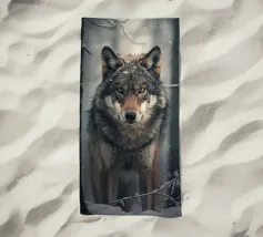 Affascinante motivo di un lupo nero nella neve Scena mistica della foresta con un'aura potente Ideale per gli amanti degli animali e della natura Perfetto come decorazione invernale e natalizia d'atmosfera Arte espressiva per la casa o come idea regalo