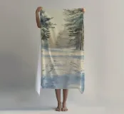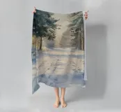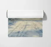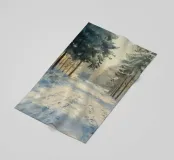 Una tranquilla mattina d'inverno si dispiega in questo dipinto d'atmosfera: un sentiero innevato nella foresta conduce attraverso alti abeti ricoperti di brina. La luce delicata del sole nascente filtra attraverso gli alberi e inonda il paesaggio di un caldo bagliore dorato. Le tracce sulla neve raccontano il movimento nella quiete: natura, pace e luce si combinano per creare un armonioso idillio invernale.