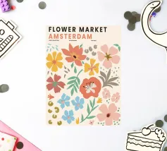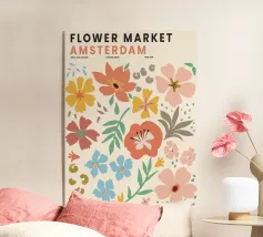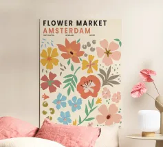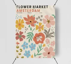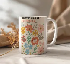 Questo colorato motivo floreale nello stile del mercato dei fiori di Amsterdam porta freschezza e vivacità in ogni casa. La combinazione dei toni vivaci dell'arancio, del giallo, del blu e del verde crea un'atmosfera allegra ed è ideale per una varietà di prodotti come murales, tazze o cuscini. Perfetto per chi cerca un design moderno e vivace per i propri interni. Portate lo splendore dei fiori direttamente a casa vostra.