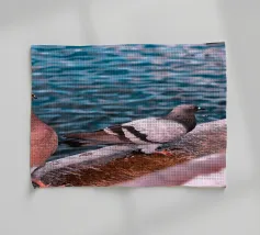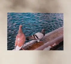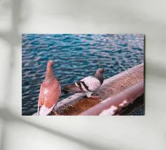 Una coppia di colombe si trovava fianco a fianco sulla tranquilla riva del fiume, con le piume grigie che brillavano nella pallida luce gialla del pomeriggio. Erano vicine l'una all'altra, con gli occhi dolci che riflettevano l'acqua scintillante. Una leggera brezza soffiava, facendo sbattere le loro ali, come se sussurrassero una semplice canzone d'amore. Lo spazio era silenzioso, lasciando solo l'immagine della semplice coppia di uccelli in riva al fiume tranquillo, che evocava un senso di pace e di amore completo.