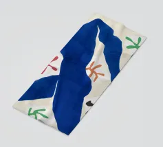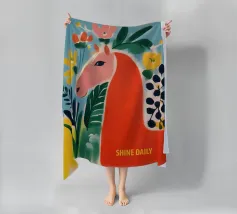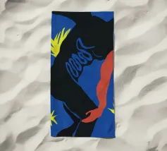 Quest'opera d'arte presenta un cavallo nero stilizzato in forma grafica e audace su uno sfondo neutro. Circondato da semplici foglie verdi astratte e da forme celestiali simili a stelle, il pezzo ha una qualità mitica e primordiale. La composizione minimalista enfatizza la potente silhouette del cavallo.