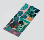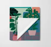 A close-up study of Monstera deliciosa leaves, showcasing their characteristic splits and rich green color, against a darker background. The style is realistic and lush.