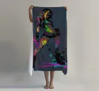 A fierce, contemporary illustration charged with attitude, motion, and colour. A confident figure stands mid-stride, her silhouette cut in bold contrast against a muted ground, while neon pigments erupt across her body like raw energy. Graffiti-like marks, splashes, and symbols blur the line between fashion, street art, and expression, giving the piece a restless, defiant pulse.