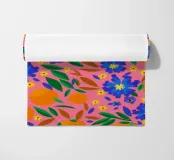 A vibrant and cheerful pattern of oranges nestled among green leaves on a bright pink background. This juicy and colorful design is full of energy and evokes the feeling of a sunny citrus grove.
